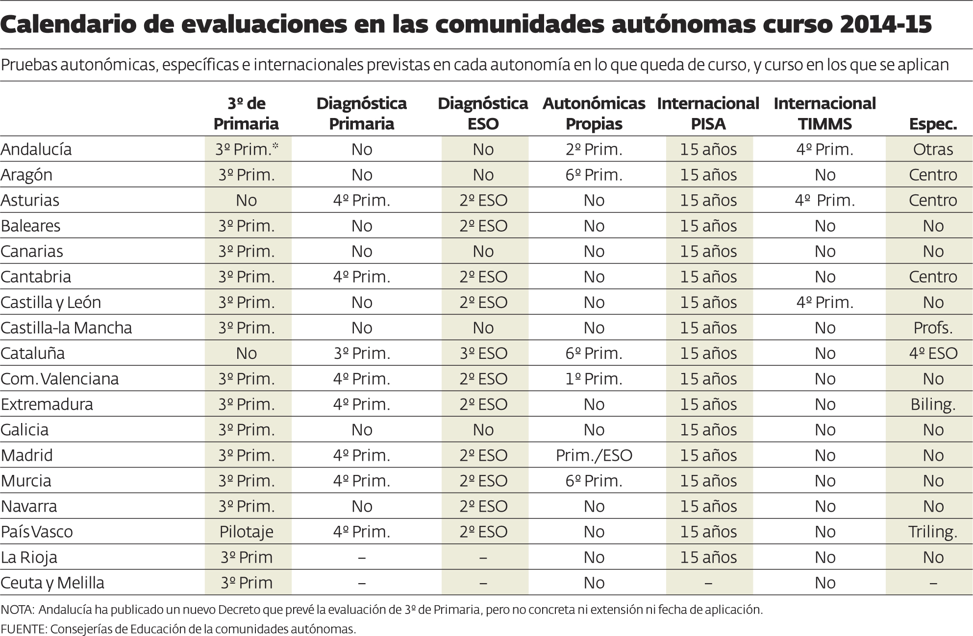 Además de 3º de Primaria, están las de diagnóstico, PISA 2015 y TIMMS