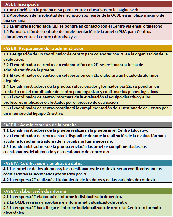 A continuación vamos a ver las diferentes fases de implementación de la prueba PISA para Centros Educativos: