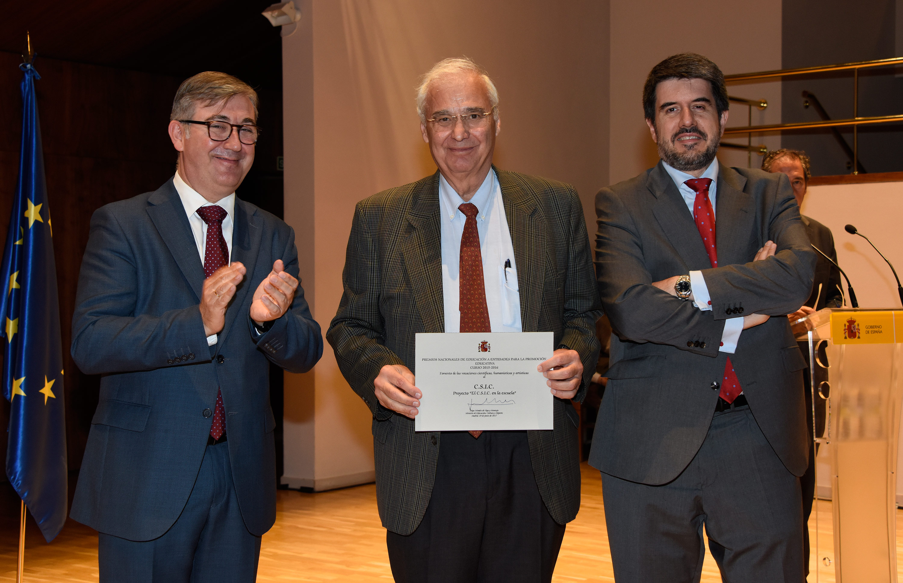 • Premio Nacional a proyectos que fomenten vocaciones científicas, humanísticas y artísticas: El CSIC en la escuela. Centro Superior de Investigaciones Científicas.