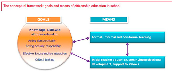 En las sociedades democráticas, la educación en ciudadanía apoya y ayuda a los estudiantes a convertirse en ciudadanos activos, informados y responsables, a la vez que los dota de voluntad y de herramientas para responsabilizarse de sí mismos y de las comunidades locales, regionales, nacionales e internacionales a las que pertenecen.