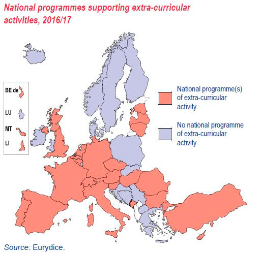 Igualmente destacable es la oportunidad de aprendizaje que se ofrece al alumnado más allá del ámbito escolar a través de actividades extracurriculares que tan importante papel juegan en el desarrollo de competencias en ciudadanía y que, además, les permiten participar en actividades de su elección, explorar diferentes temas y aprender en contextos externos por medio del deporte, el voluntariado, actividades relacionadas con el medio ambiente, con la vida política y democrática, redes de debate internacionales, arte y cultura, etc.