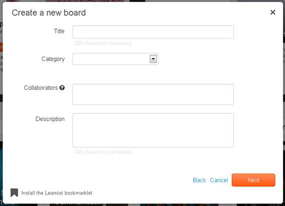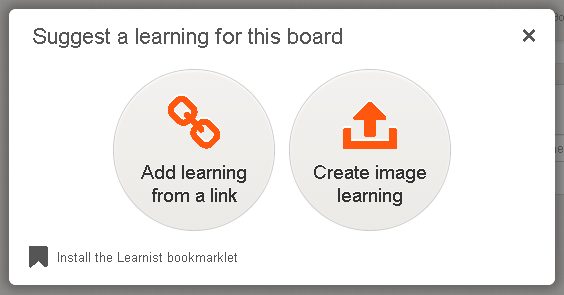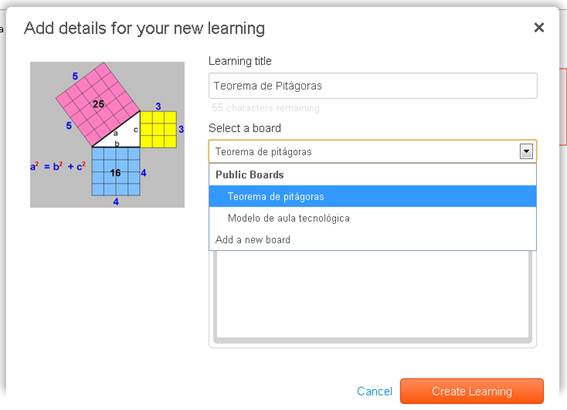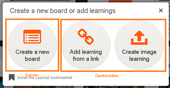 A continuación, se nos muestra una ventana que nos permite crear un curso (board) o añadir un contenido de aprendizaje a través de una URL o de una imagen: