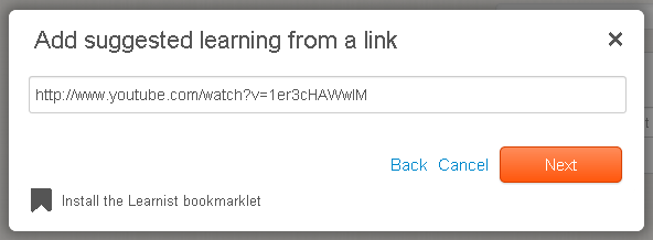 Una vez seleccionado Add learning from a link pegamos la URL copiada de la web en la que se encuentra el recurso y la pegamos en su correspondiente campo.